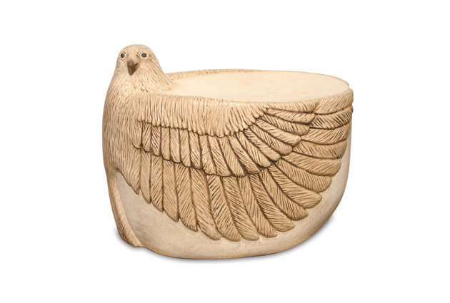 Featuring a guardian falcon encircling the seat with its wings, the Falcon Stool/Side Table from Tucker Robbins was inspired by a statue of the Pharaoh Khafre and the god Horus from the Old Kingdom of Egypt. The falcon remains a symbol of royalty, strength, and courage to this day. Tucker Robbins, Suite 504, 212.355.3383, tuckerrobbins.com